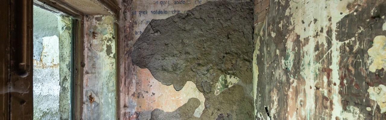 Non abbiamo alcuna informazione su questa casa abbandonata che abbiamo scoperto mentre eravamo alla ricerca di un altro luogo. La casa del soldato giace, quasi del tutto distrutta, all’interno di una folta boscaglia. In alcune stanze troviamo, ormai solo in parte, alcune scritte che ci fanno intuire chi fosse il proprietario.