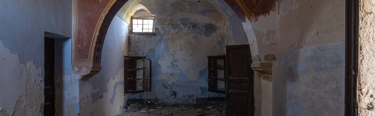 Una carta da parati con il motivo dei gigli, archi e travi in legno, un bellissimo soffitto a cassettoni e una terrazza ampia e ben soleggiata dove si respira ancora una certa aria di eleganza e aristocrazia, quella vera. Viene proprio da dire: “Che peccato”. Abbandonata si, deserta anche, totalmente chiusa non tanto questa antica masseria, visto che dal prospetto esterno si vedono chiaramente diverse finestre divelte che affacciano sul nulla delle macerie tutt’attorno e un grande portone d’ingresso tanto precario quanto arrugginito dal passare del tempo.