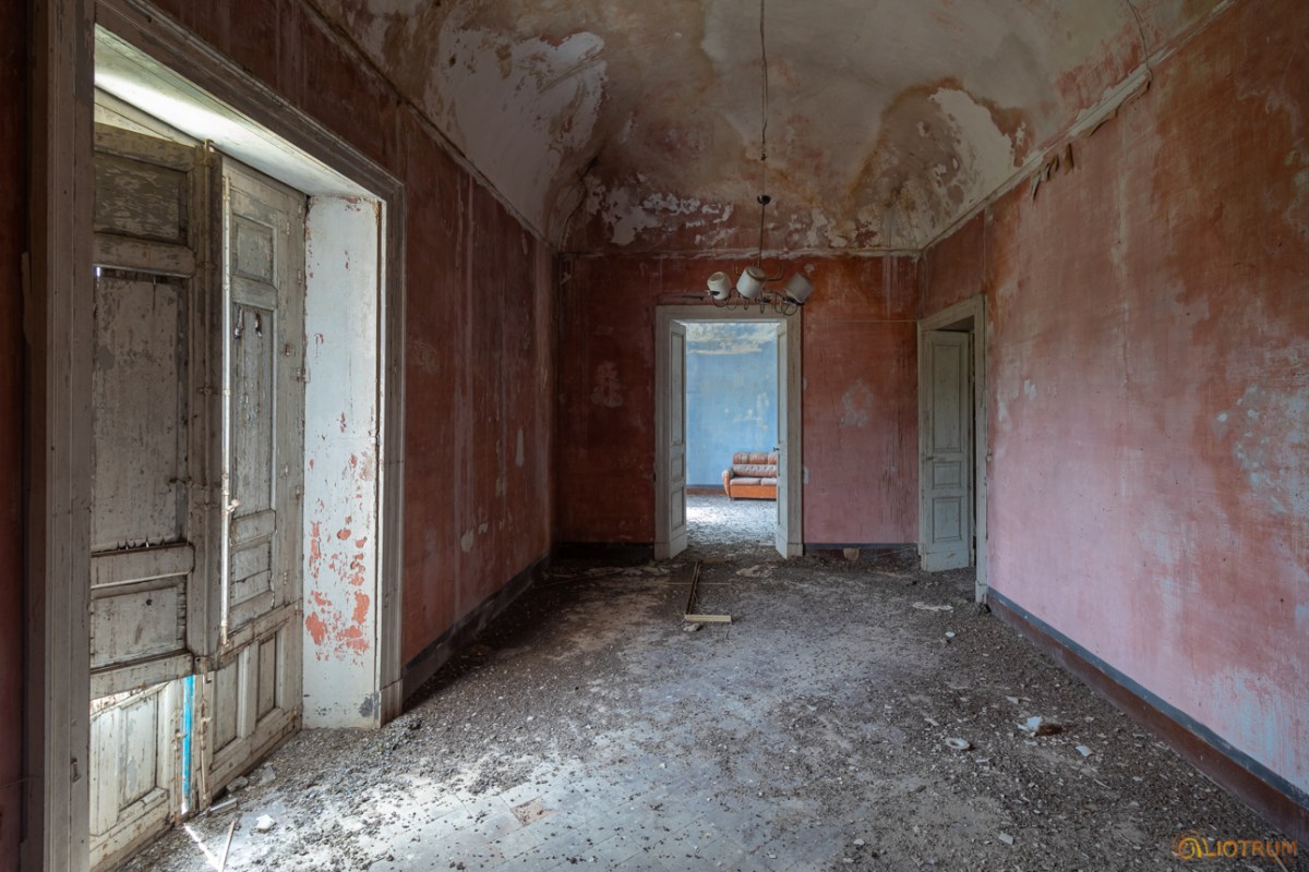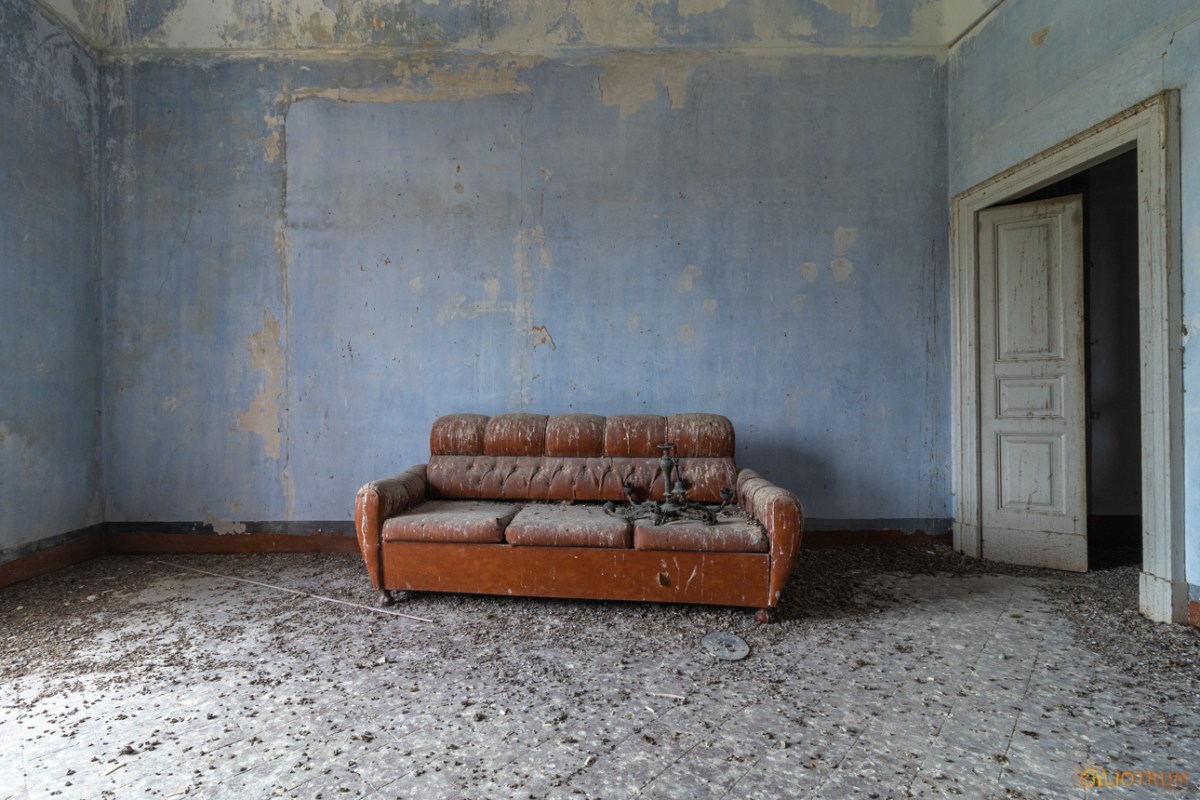 Posizionata al centro di terreni agricoli che sembrano curati e coltivati, la masseria invece è lasciata lì agonizzante. Alcune parti esterne sono crollate mentre all’interno si trovano alcuni spunti fotografici. Quella che forse una volta sarà stata la sala da pranzo conserva ancora appeso il lampadario mentre, in un’altra stanza, uno simile è adagiato sopra un divano.