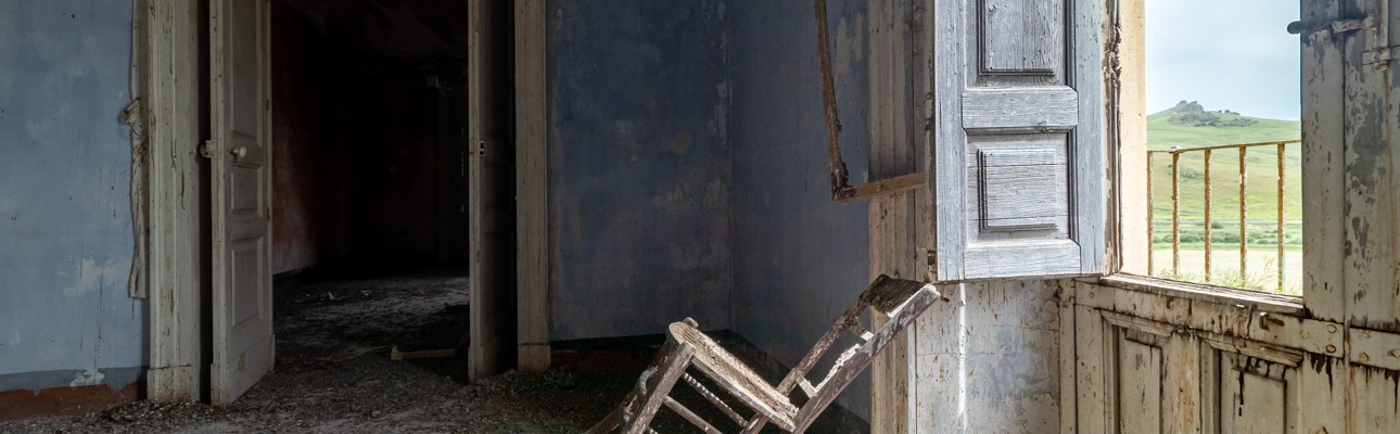 Proprio come quella vecchia seggiola, che sembra quasi come fosse appesa ad un filo, e che si regge miracolosamente in piedi tra il pavimento ormai distrutto e un infisso evidentemente malandato.