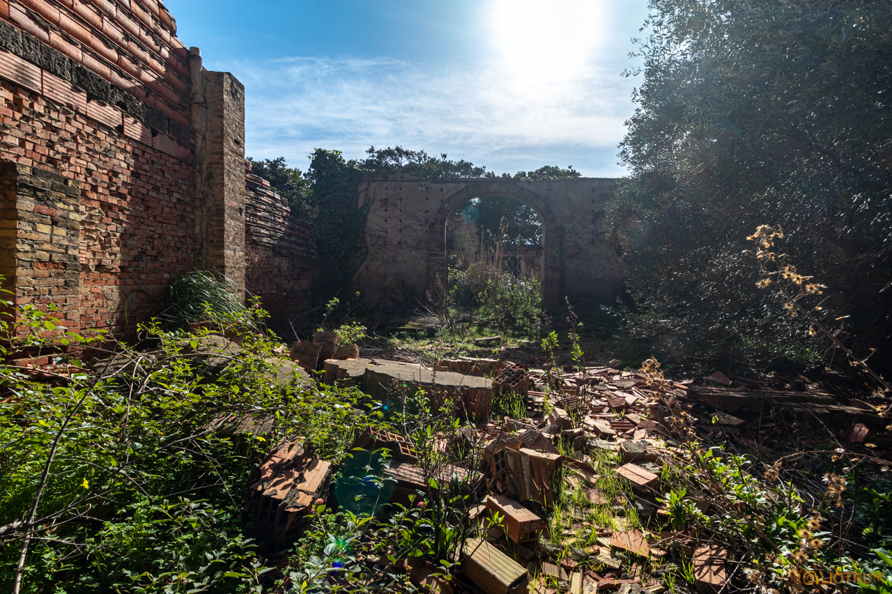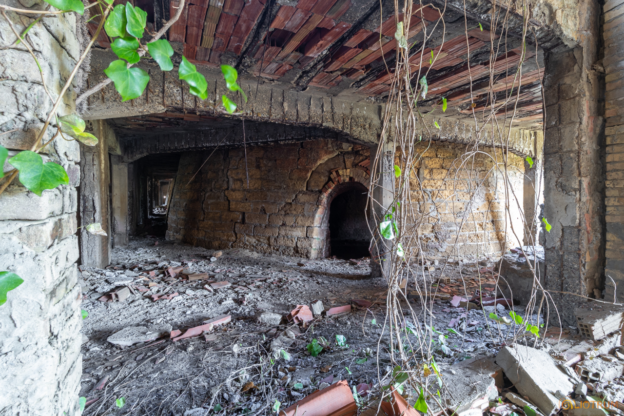 Di facile ingresso, colma di immondizia e laterizi, la fabbrica abbandonata conserva ancora le ciminiere e i forni utilizzati per la lavorazione dell’argilla.