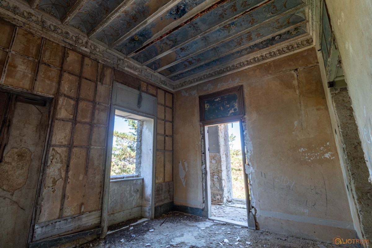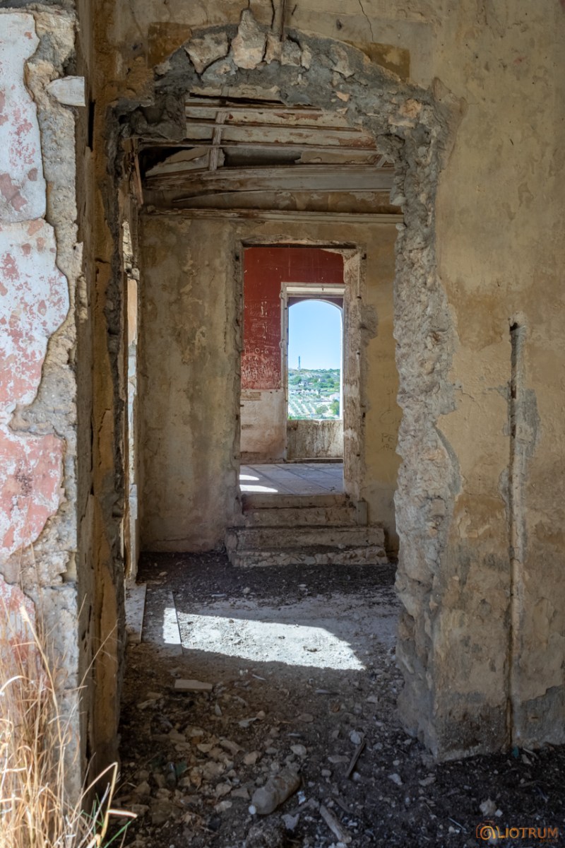 Troviamo una Jeep parcheggiata al suo esterno con gli sportelli aperti, un cane attaccato a una lunga catena e molte balle di fieno sparse dappertutto. A questo punto attuiamo la strategia dei “bravi ragazzi” cercando di richiamare l’attenzione di qualcuno che in effetti si palesa poco dopo circondato da capre e cani pastore. Gentilissimo, il signore che incontriamo ci permette di visitare la villa accompagnandoci e raccontandoci la sua storia.
