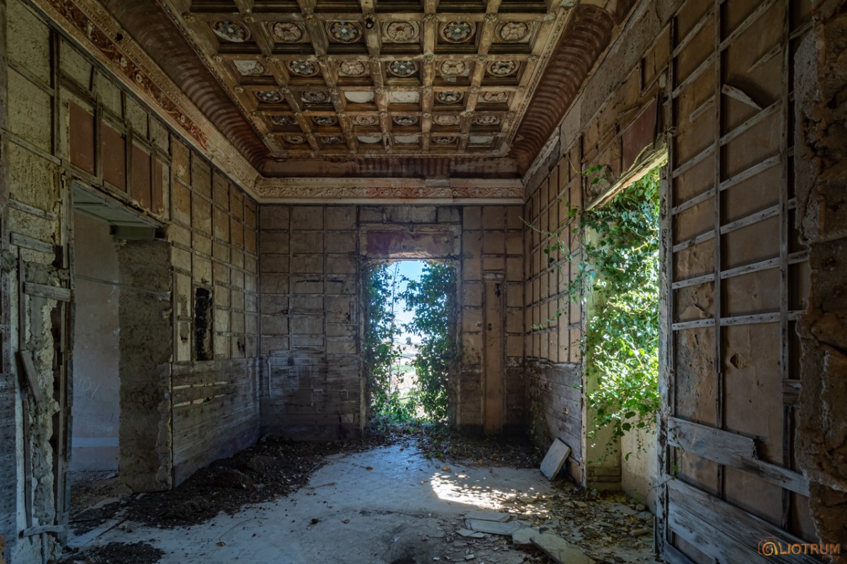 Entriamo dal viale d’accesso principale che troviamo aperto e giunti in prossimità dell’ingresso ci accorgiamo che non si tratta di una vera e propria villa abbandonata.