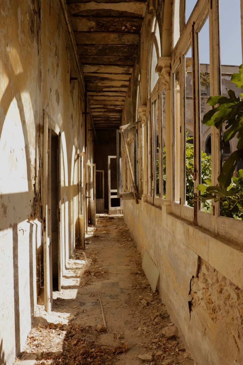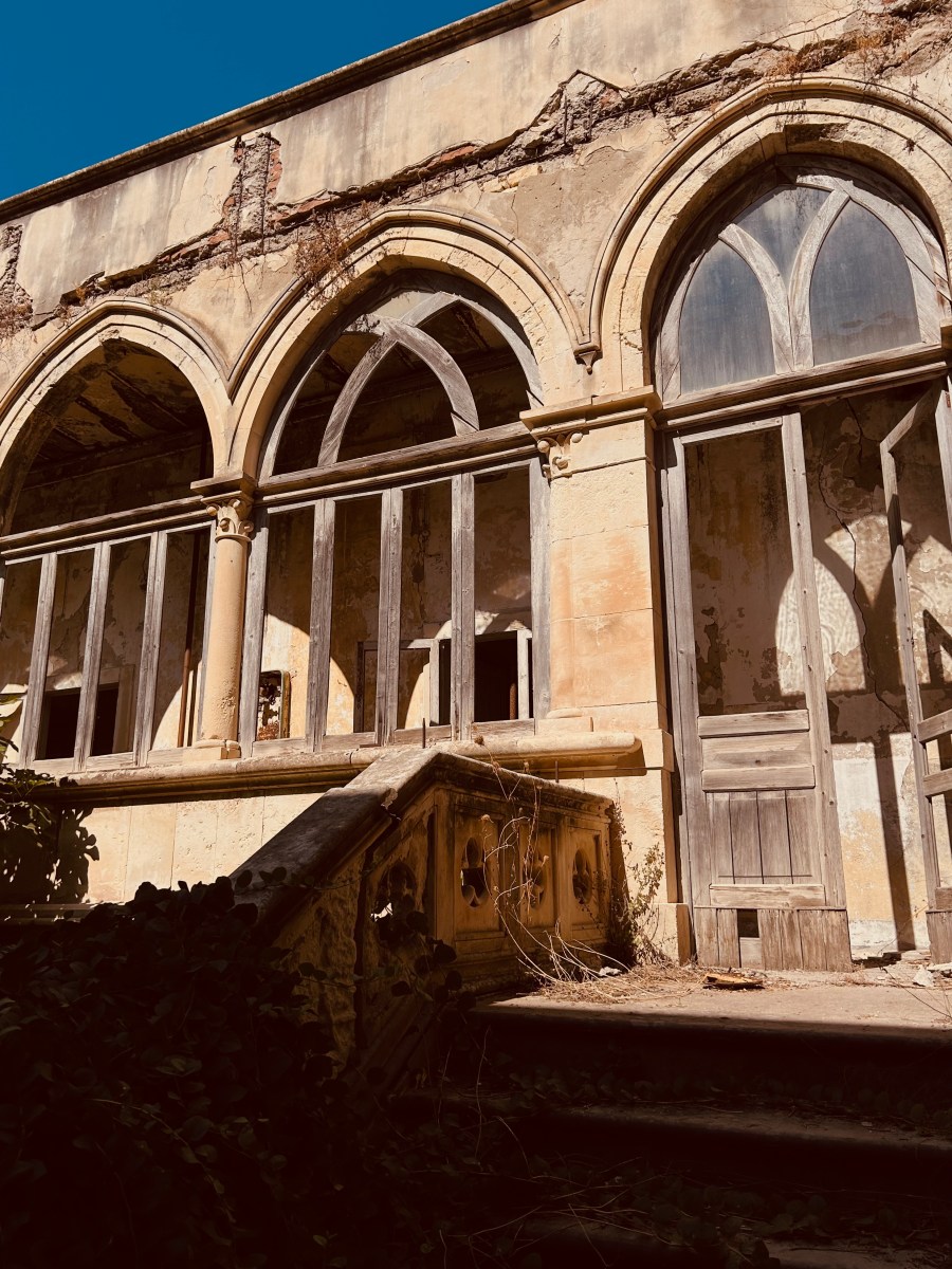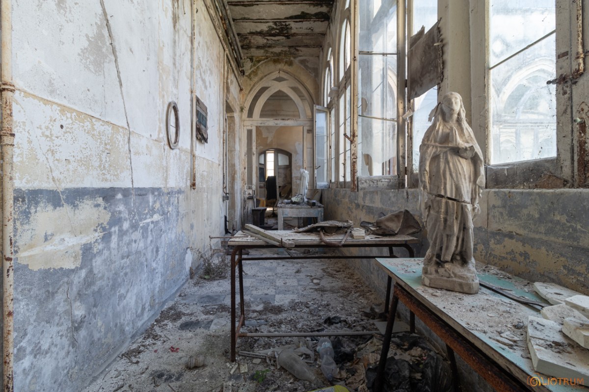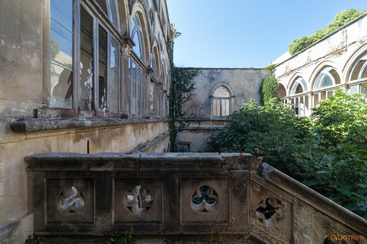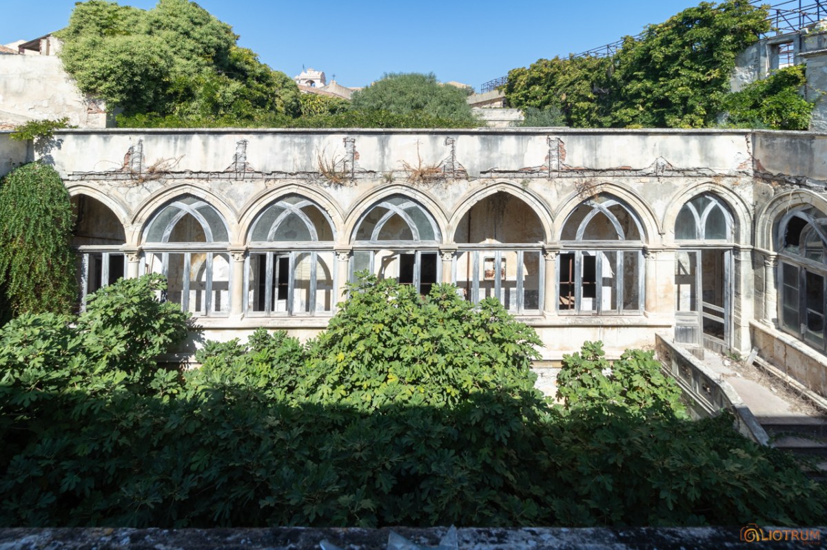 Per raggiungere le aule di studio percorrevano questi corridoi con delle grandi vetrate in stile neogotico che adesso ritroviamo coperte di edera e rovinate.