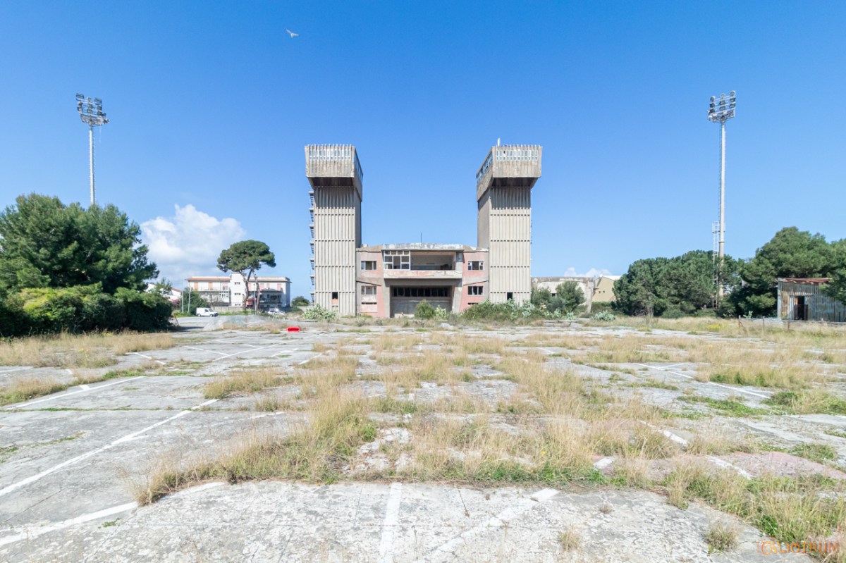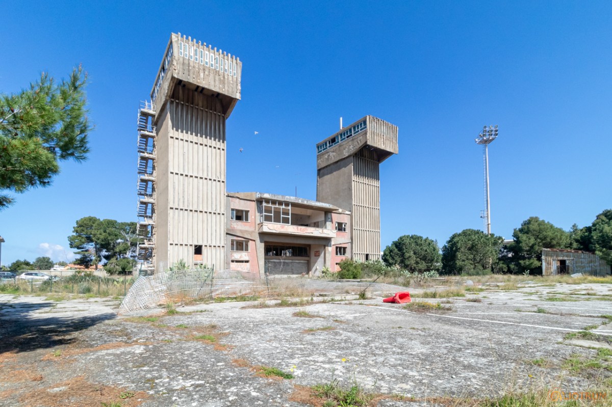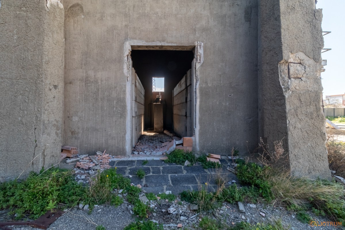 Fu il primo edificio verticale al mondo costruito in cemento armato precompresso. Un mostro di cemento che ora giace in completo abbandono e che un tempo fungeva, attraverso un ingegnoso sistema di pulegge e tamburi, da bilanciamento alle forze di trazione dei cavi elettrici che solcavano i cieli dello stretto di Messina.