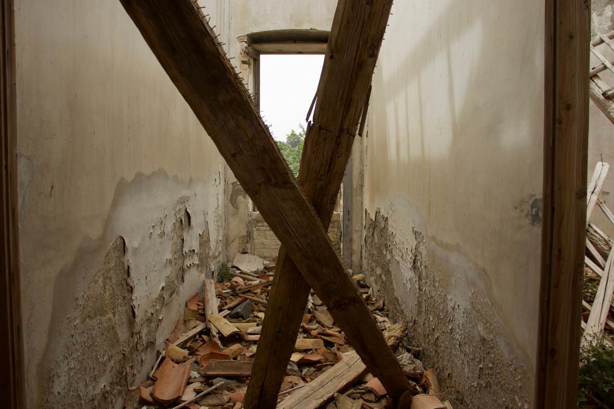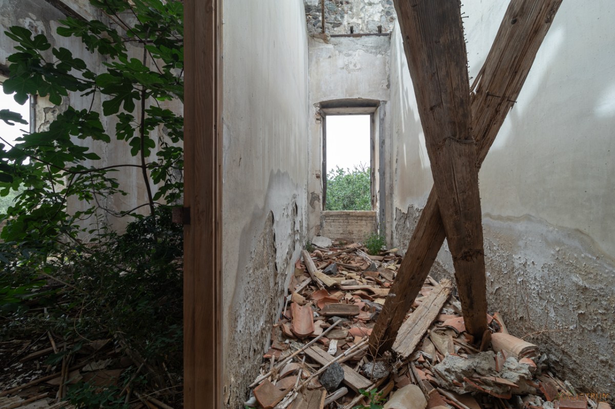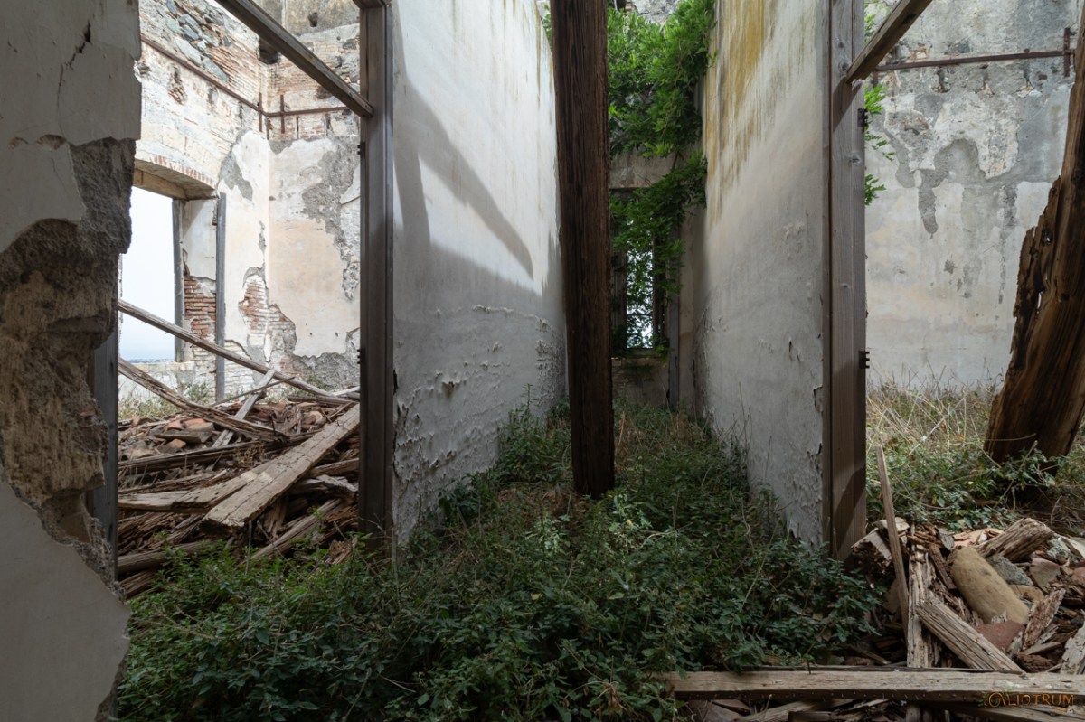 Erbe infestanti e rampicanti si fanno spazio sulle sue membra cadenti, come un tentativo da parte della natura di riassorbire ciò che le è stato sottratto. Tra le crepe dei muri scrostati, trovano rifugio alcune colombe, regine dei luoghi abbandonati, e un rapace solitario, i soli abitanti di questo regno di silenzio.