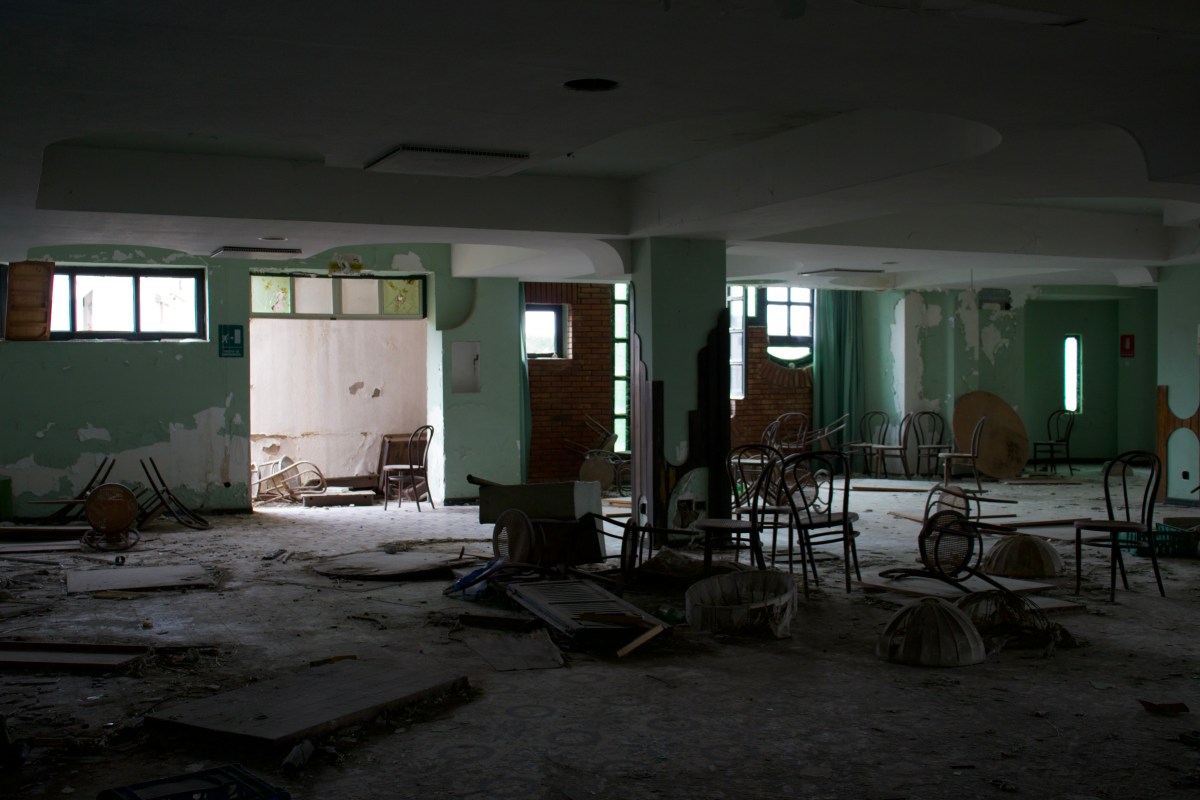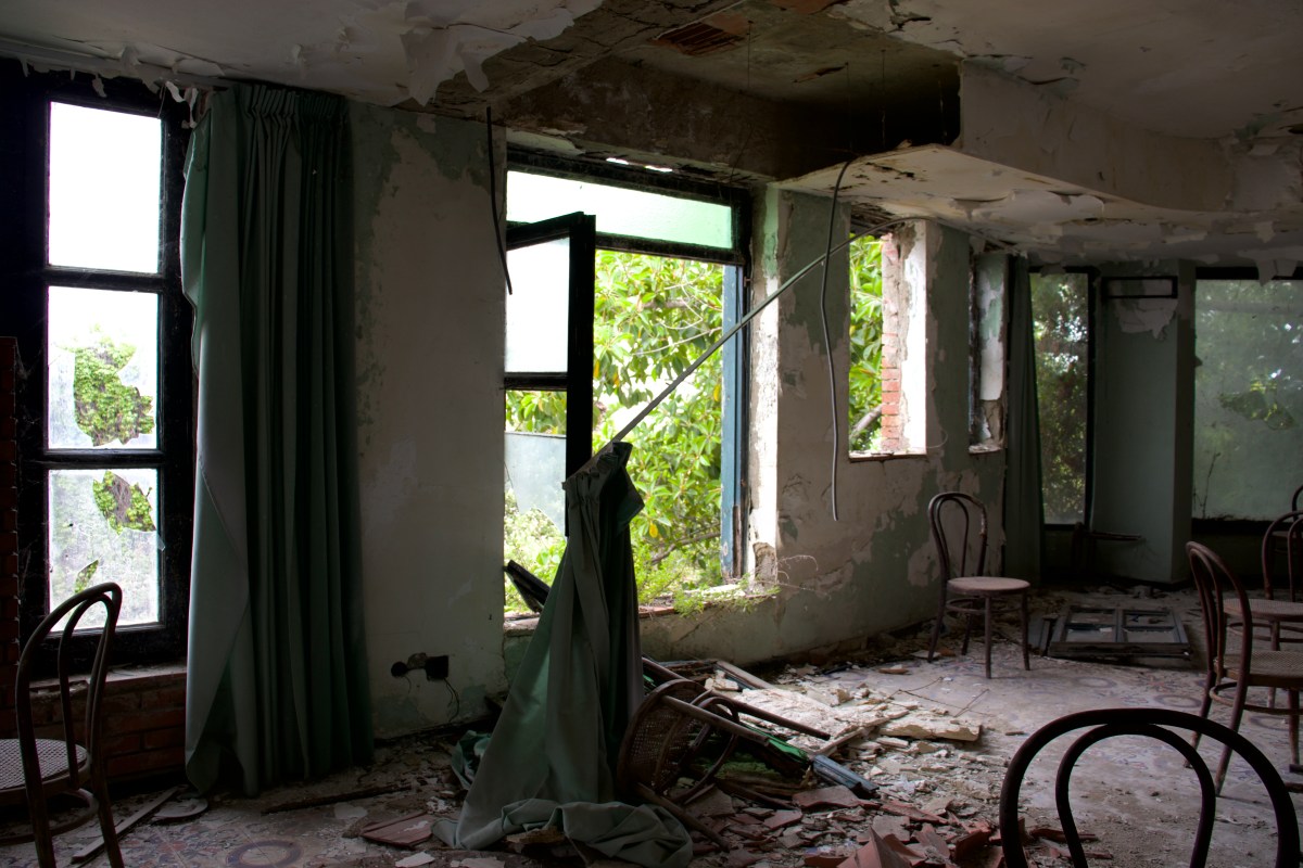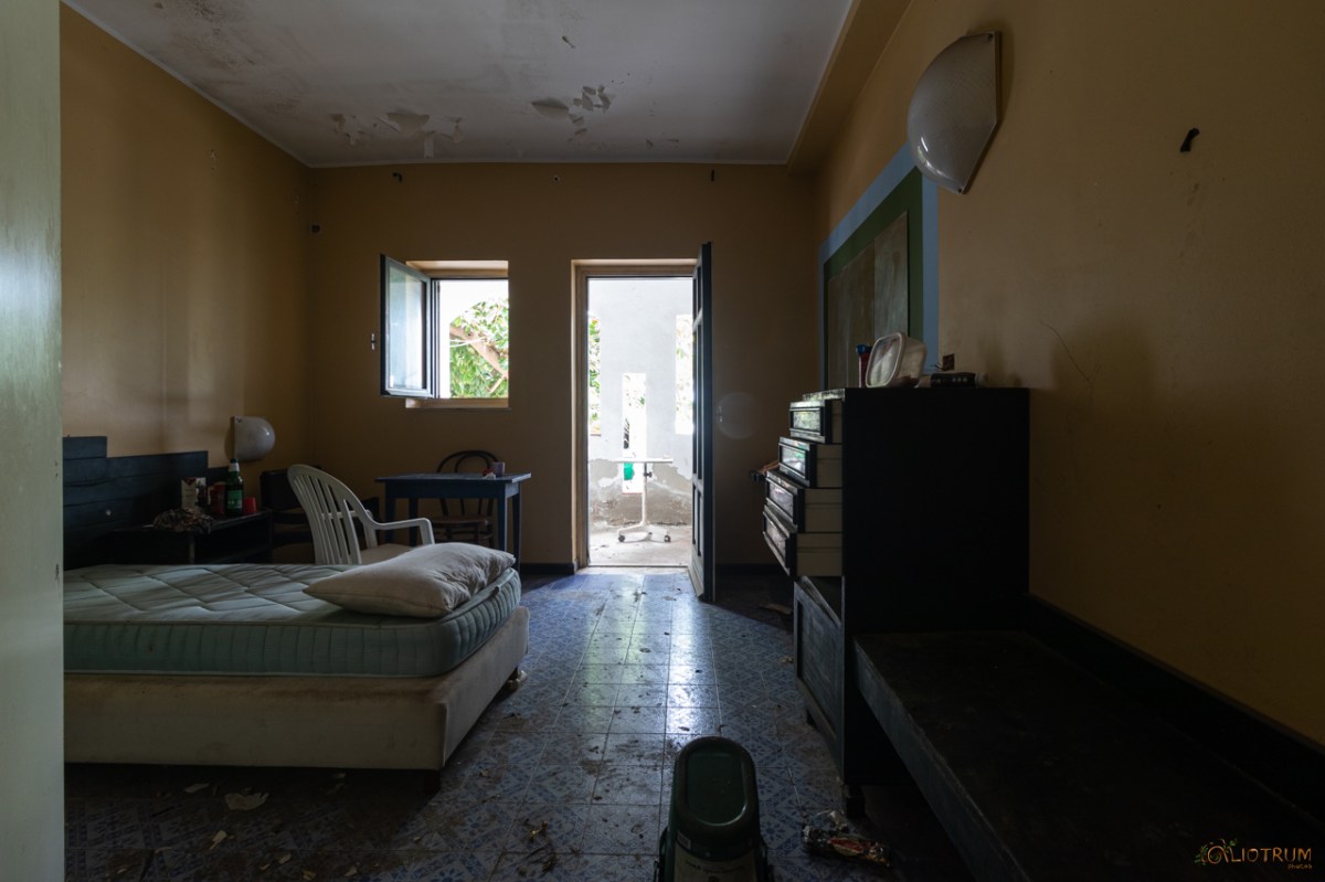Tanfo di escrementi, “lurdia” dappertutto e la consapevolezza di non essere soli ci porta a visitare il luogo abbastanza velocemente. Troviamo alcune stanze sommariamente arredate per ospitare chissà chi, viste le condizioni estremamente fatiscenti, mentre altre completamente distrutte si pongono davanti a noi una dopo l’altra come un incessante déjà-vu.