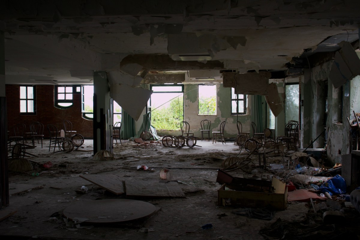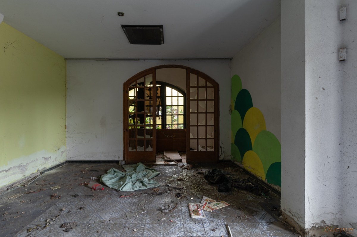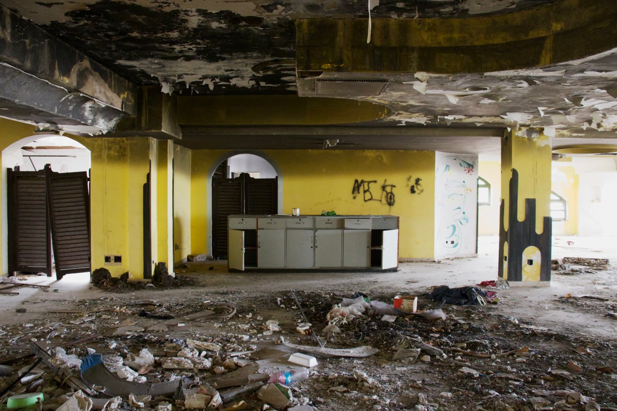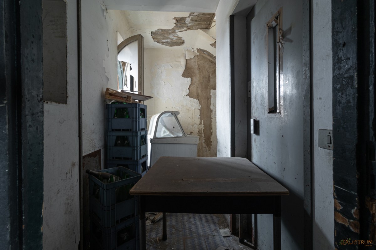 Tanfo di escrementi, “lurdia” dappertutto e la consapevolezza di non essere soli ci porta a visitare il luogo abbastanza velocemente. Troviamo alcune stanze sommariamente arredate per ospitare chissà chi, viste le condizioni estremamente fatiscenti, mentre altre completamente distrutte si pongono davanti a noi una dopo l’altra come un incessante déjà-vu.