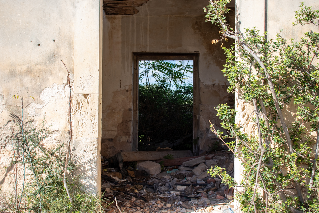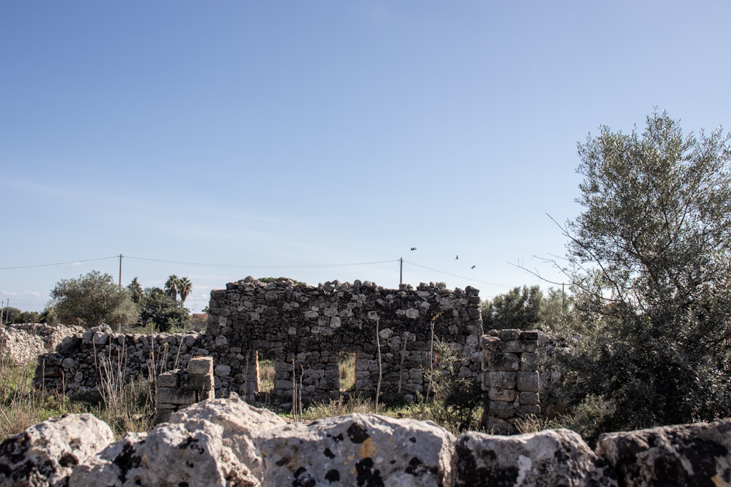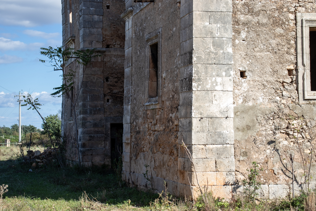 L’improvvisato cancelletto per impedire che escano è aperto. Saranno in giro, a pascolare. Le pecore, che ormai popolano questa masseria abbandonata eletta a loro giaciglio, non ci sono e noi esploriamo quel che resta di questo luogo.