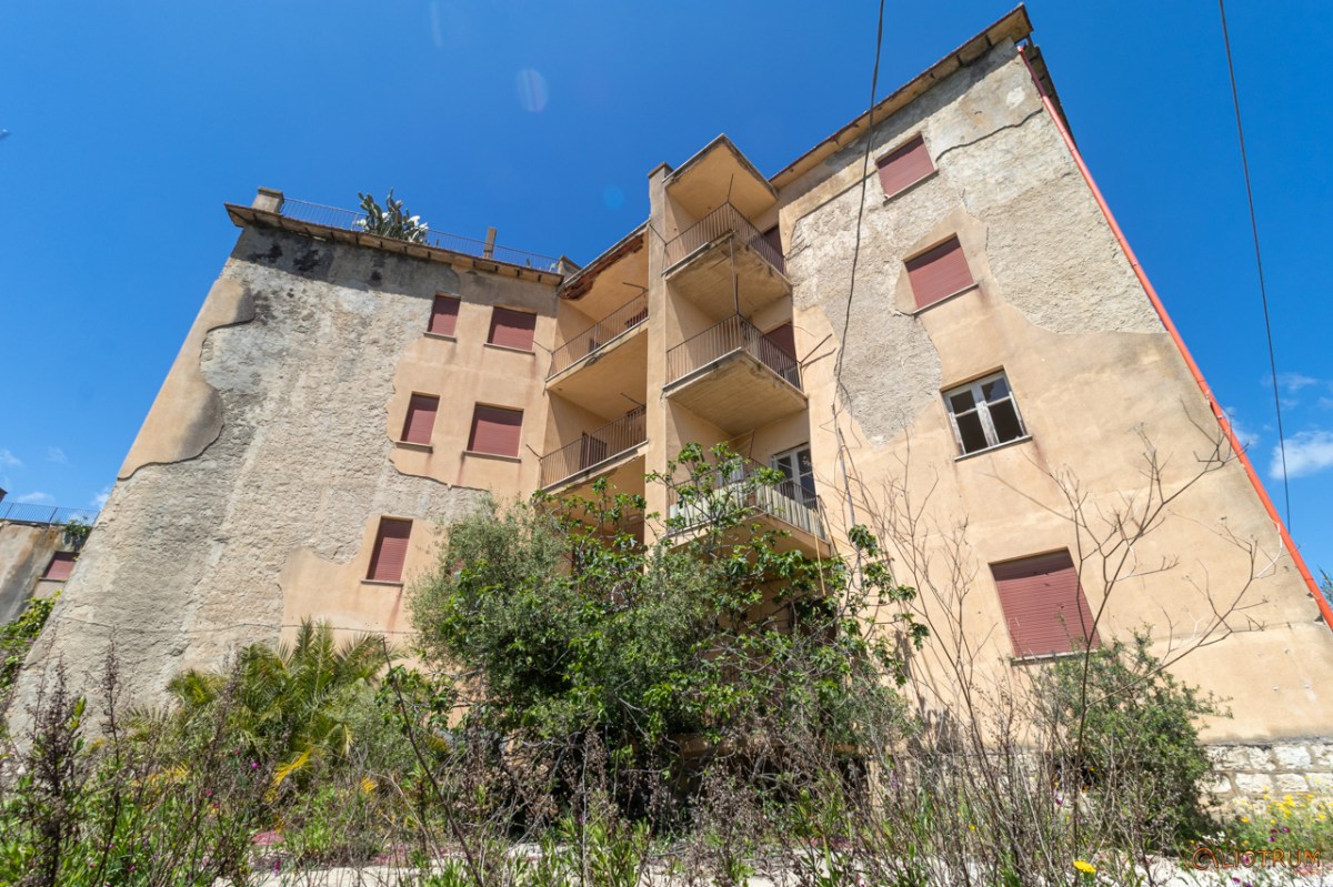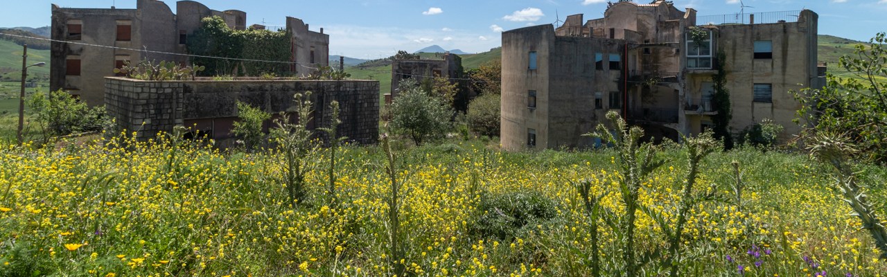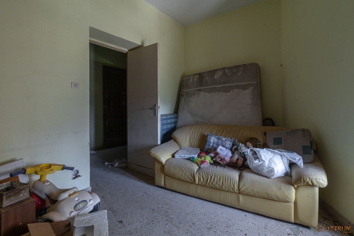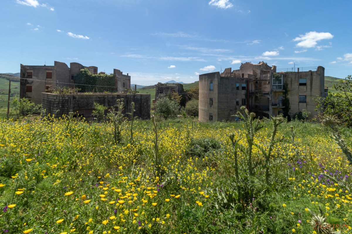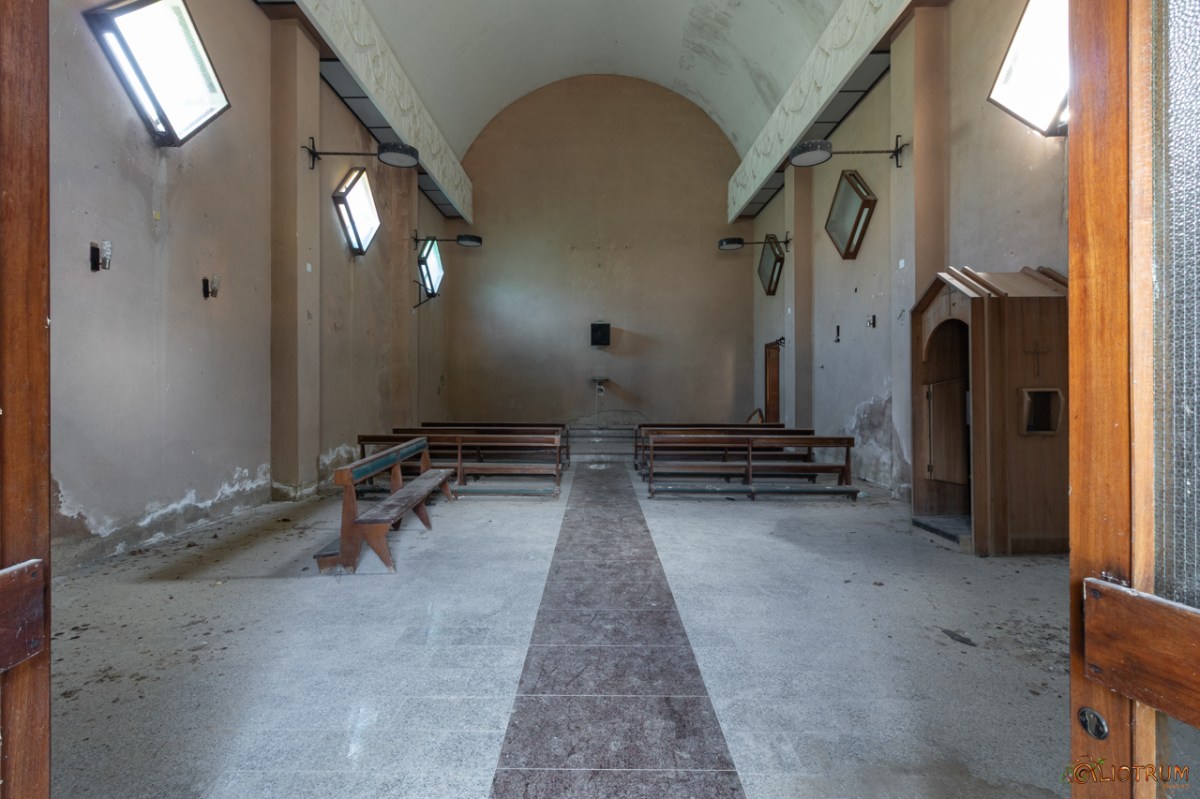 Nient’altro che otto palazzine, radunate attorno alla guardia medica; nient’altro che desolazione, adesso che il tempo si é portato via tutti e tutto, e l’incedere silenzioso del curioso esploratore osserva i brandelli di un passato non troppo lontano, ma che giace dimenticato nell’assolata campagna.