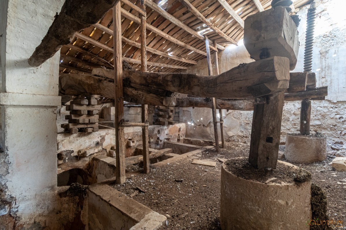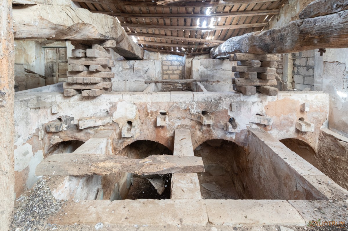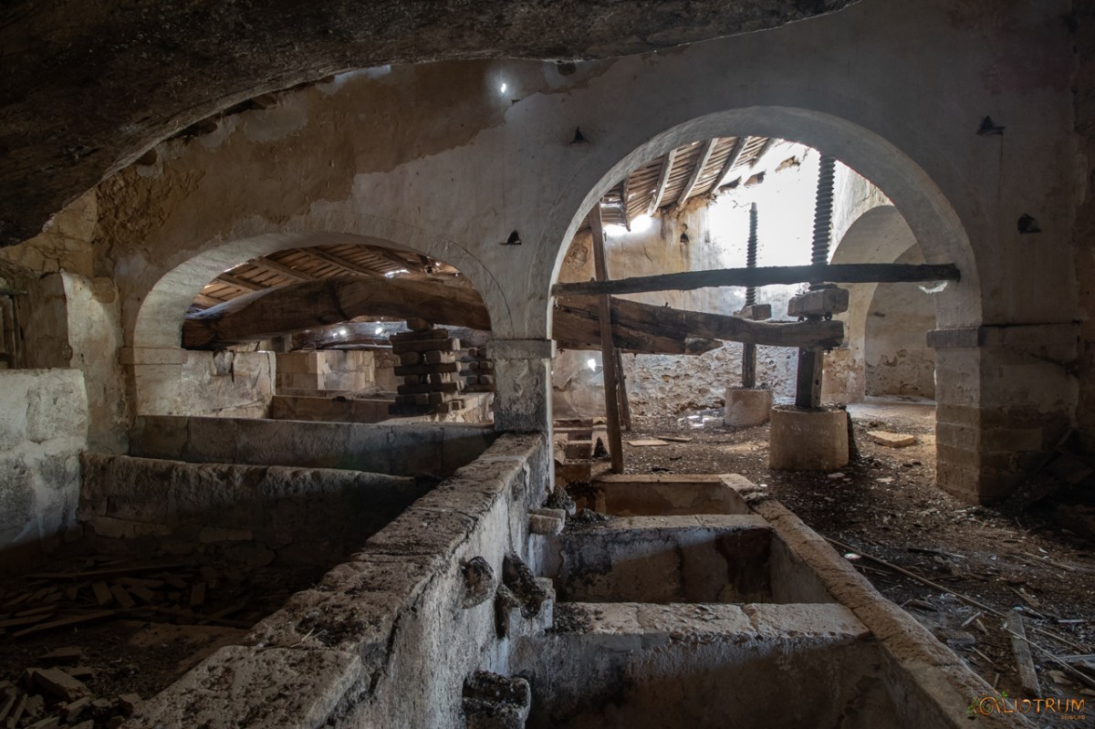 Nell’oblio dell’abbandono, rimane il silenzio del torchio e non si sente più lo scorrere del vino novello attraverso le canalette ormai secche.