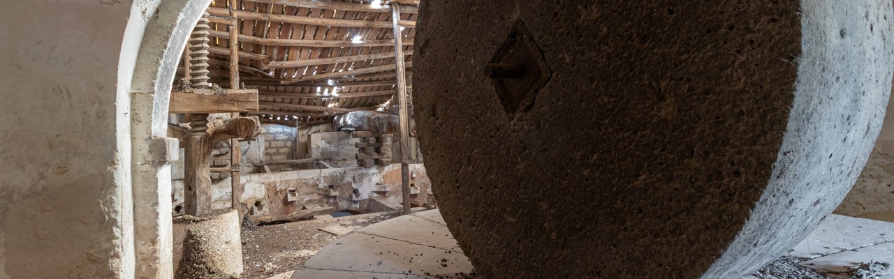 Nell’oblio dell’abbandono, rimane il silenzio del torchio e non si sente più lo scorrere del vino novello attraverso le canalette ormai secche.